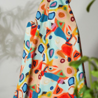 Polyester twill fabric mimics cotton stretch, perfect for pants, skirts, tops, casual wear, & outdoor jackets with custom 4-way printed designs for everyday versatility.