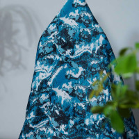 This fabric boasts a geometric print in a single-sided design, complemented by a shiny sateen finish that adds a luxurious touch.