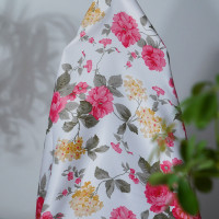 This fabric showcases a vibrant floral print on a single side, enhanced by a shiny sateen finish that adds a touch of elegance to any window treatment.